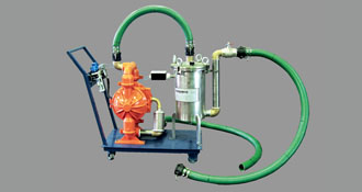 O filtro bomba portátil, serve preferencialmente para transferir produtos de um reservatório para o outro que tenham a necessidade de ser filtrados. Este equipamento possui mangueiras flexíveis e sistemas de engate rápido para fácil limpeza.